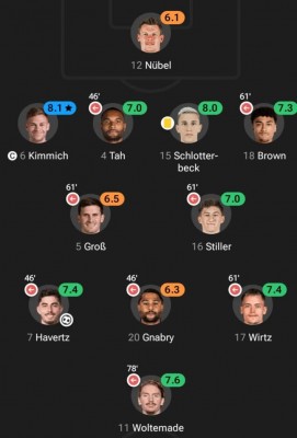 Виртц конечно отлично сыграл, но радости мало от этого, потому, что без него эта команда середнячок. Гнабри конечно радует в последнее время, но ведь это не тот игрок, который тащет команду.
