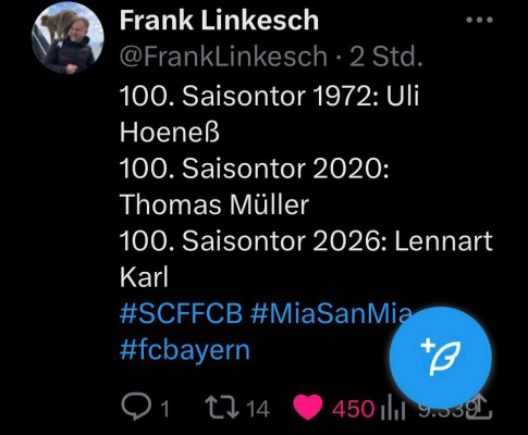 Как думаешь, Леонид - огромные вливания и приглашение Компани были сделаны лишь для победы в БЛ? Я как и ты восхищен сезоном сильной Баварии, но все это была прелюдия к важнейшим матчам концовки сезона - ЛЧ. Все преобразования и были сделаны, чтобы изменить плохую тенденцию - Бавария исторически берет 1 ЛЧ за 10 лет