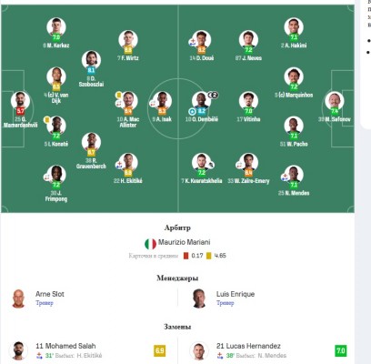 Теперь Кварацхелия. Конечно он шикарный нападающий - кто спорит, и его приход усилит любой клуб, но куда его поставить? Вместо Диаса, который показывает в этом сезоне шикарный футбол, сыгрался с партнерами и силен в защите и прессинге? Диас в этом сезоне имеет среднюю оценку более 8, что объективно оценивает его силу. Чвича возможно сильнее Диаса в атаке, но гораздо хуже в защите. прессинге и отборах. Я за приход Хвичи, но не все так просто.