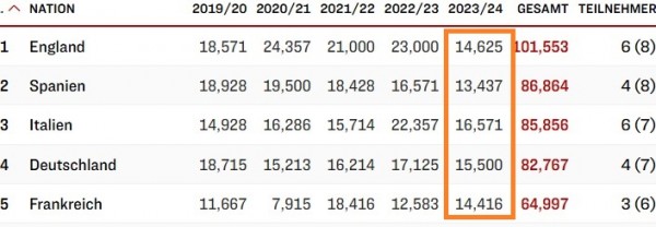 Серия А скорее всего наберёт самое большое количество баллов. В итоге главым соперником Бундеслиги представляется АПЛ. Решающим может стать противостояниe Фрайбурга и Вест Хэма. Если немецкий клуб пройдёт дальше, а паралельно мы знаем что из турнира на 99,99% выбывает Брайтон, то будут хорошие шансы побороться за пятую путёвку в ЛЧ.