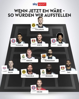 Неплохой состав, только Хуммельса и Рюдигера поменять местами, чтоб при перестроении в тройку ( Раум в высокую позиции, остальные выстраиваются в тройку) Хуммельс становился центральным в тройке.