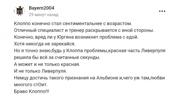Поклонники немецкого футбола, наслаждайтесь моментом. Вся главная Спортс.ру завалена заголовками о Клоппе. Человек ничего не выиграл, он просто сообщил что не доработает свой контракт. В комментах нейтральный футбольный фанат выказывает свои симпатии, фанаты Ливерпуля заливают чаты своими слезами, Лукомский признается в любви. Примерно что-то подобное ожидаю при завершении карьеры Крооса. Потом Мюллера, в какой-то момент Нойера. Все эти люди это фундамент на котором держится пока понятие - немецкий футбол. Без них он бы давно канул в лету и остался бы только в воспоминаниях. Благодаря достижениям этих людей немецкий футбол, его гордое имя ещё хранит свое гордое имя.