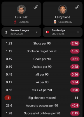 2) Диаз нужен Барсе как опция, а не как игрок основы. В Барсы есть кому играть без него. Рафа - Лева (Торрес) - Ямаль. Кого тет Диаз вытеснит??? А в Баварии его хотят купить как основного. Много ли я видела Диаса? Нет немного. Но все же видел. Для меня главный показатель, что за последний сезон игрок, который в накате должен был бы быть на ТМ подешевел на целых 15 лямов. Очень вероятно что за сезон 25/26 он еще больше подешевеет. А это означает, что он не то чтобы растет, а наоборот ухудшает игру