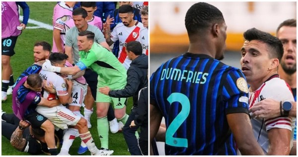 В матче Ривер-Интер опять встретились старые враги - Акунья и Думфрис. Первая стычка между ними произошла еще в 2022 году, а когда сегодня Ривер остался вдевятером, Акунья озверел - он откровенно охотился за Думфрисом, устраивал регулярные стычки, а после матча его держало 10 человек, чтобы не допустить до драки. Таких надо пожизненно дисквалифицировать - им не место на поле. Это же зверь какой-то - посмотрите на его рожу.