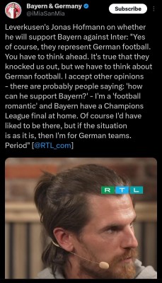 Это опять таки вопросы к руководству Баварии. Что они и как хотели. Насколько я припоминаю история ухода Левы началась с того, что он обиделся на руководство, которое тайно вело переговоры с Холандом. В результате Холанд выбрал Сити, а Лева ушел в Барсу. Что хотело дальше руководство. Непонятно. Возможно они считали что Мане станет играть в центре нападения, возможно Нагель сказал им что ему 9 номер не нужен, и он будет играть с этой ложной девяткой, как он впрочем в начале сезона и играл, пока не начал использовать Чупу. Как бы там не было, но Кейна купили, после того как Бавария только чудом взяла Салатницу в том сезоне. Видимо решили, что Баварии нужен бомбардир, а не ложная девятка. Впрочем как мы помним с бомбардиром Кейном, который забил в БЛ 30+ мячей Бавария стала только третьей. Значит проблема далеко не в одном отсутствии 9 номера, а гораздо глубже. И мы все догадываемся где она зарыта. Главная проблема Баварии ее руководство, которое после ухода Пепа (а то что Пепа взяли вместо Юппа, это уже было большой ошибкой) бросалось из стороны в сторону. Эти люди даже умудрились тренера действительно настоящего баварца в отличии от некоторых -Флика, который выиграл с Баварией все потерять. Но уже до Флика были проблемы. Назначение папы Карло и странное его увольнение, потом взяли непонятно почему и за какие заслуги Ковача, опять уволили не дав доработать к счастью, потом Флик, Нагель, ТТ и теперь Компани. Кто из них работал больше 2 сезонов? Очень похожая ситуация и с игроками. Павар, Эрнандес, Гравенберг, Мазрауи, Де Лихт. Сколько сезонов отыграли они? Почему их отпустили/продали? Причины разные, но то что ни один из них не играл в Баварии как к примеру Боа или Алаба, Мартинес, да даже Толиссо. Постоянно какие то непонятные решения кого покупать, кого продавать, а кого оставлять. А я уже молчу о таких персонажах как Санчеш, Рока, Сарр, Сарагоса, Буе, которых непонятно почему покупали, которые никогда толком не играли, положиться на которых даже для ротации не приходилось, и которые бесславно уходили или уходят. Также удивляет вера руководства в игроков, которые из сезона в сезон ничего нового не показывают, нужный уровень не тянут, очень нестабильны, очень часто травмированы, но при этом получают огромные деньги. Вот что нужно знать о деятельности руководства Баварии это тупо две истории из последних. Сначала ТТ наш тренер и он будет работать дальше (это уже после поражения от Леверкузена), потом мы тут поговорили, и решили вместе с ТТ что он доработает до конца сезона и уйдет, потом может ТТ все же останеться еще на год (ТТ у которого был контракт еще на год, который судя по всему уже разорвали, "Я не против, но денег отвалите больше мне"). Вторая история нам не нужен Коман, мы его готовы продать летом 2024 или зимой 2025. Коман не нужен, о Гнабри и Сане ничего не говорят в стиле "не нужны". 1/8 против Леверкузена, игра в чемпионате против Леверкузена. Играет в старте Коман. Не Сане, не Гнабри, а Коман. Простой вопрос, а почему ненужен из этой тройки тогда в первую очередь именно он??? Логично же если исходить из игровых приоритетов тренера Компани, что Коман ему нужнее Гнабри и Сане, раз именно его он выпускает в старте на ключевые игры. Наверняка против Интера он также вышел бы, а не Сане, если был бы здоров. Тогда простой логический вопрос почему первым на выход оказалс