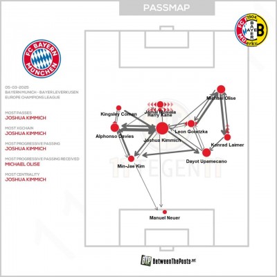 Вчера Байер играл 30 минут в меньшинстве и ни разу голову поднять не смог. 7-0 по ударам, 80/20 владение и тотатальный контроль игры Баварией