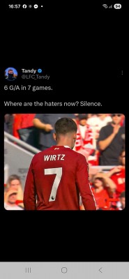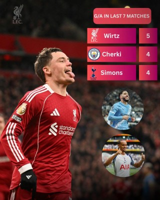 "Florian Wirtz has got 4 goals and 2 assists in his last 7 Liverpool games."