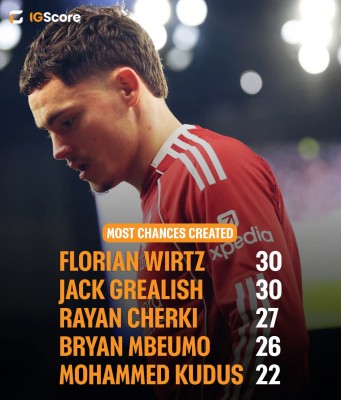 Ни один игрок в лиге не сделал больше точных передач в последней трети поля (44) или успешных обводок (7), что отражает его контроль и креативность в победе над «Вулверхэмптоном» со счетом 2:1.