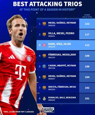 У Диаса 148 матчей за Ливерпуль и 30 за Баварию. Скорее всего до конца сезона он должен выполнить и возможно перебить ливерпульский показатель Г+П. В Бундеслиге стаж считается год за два.